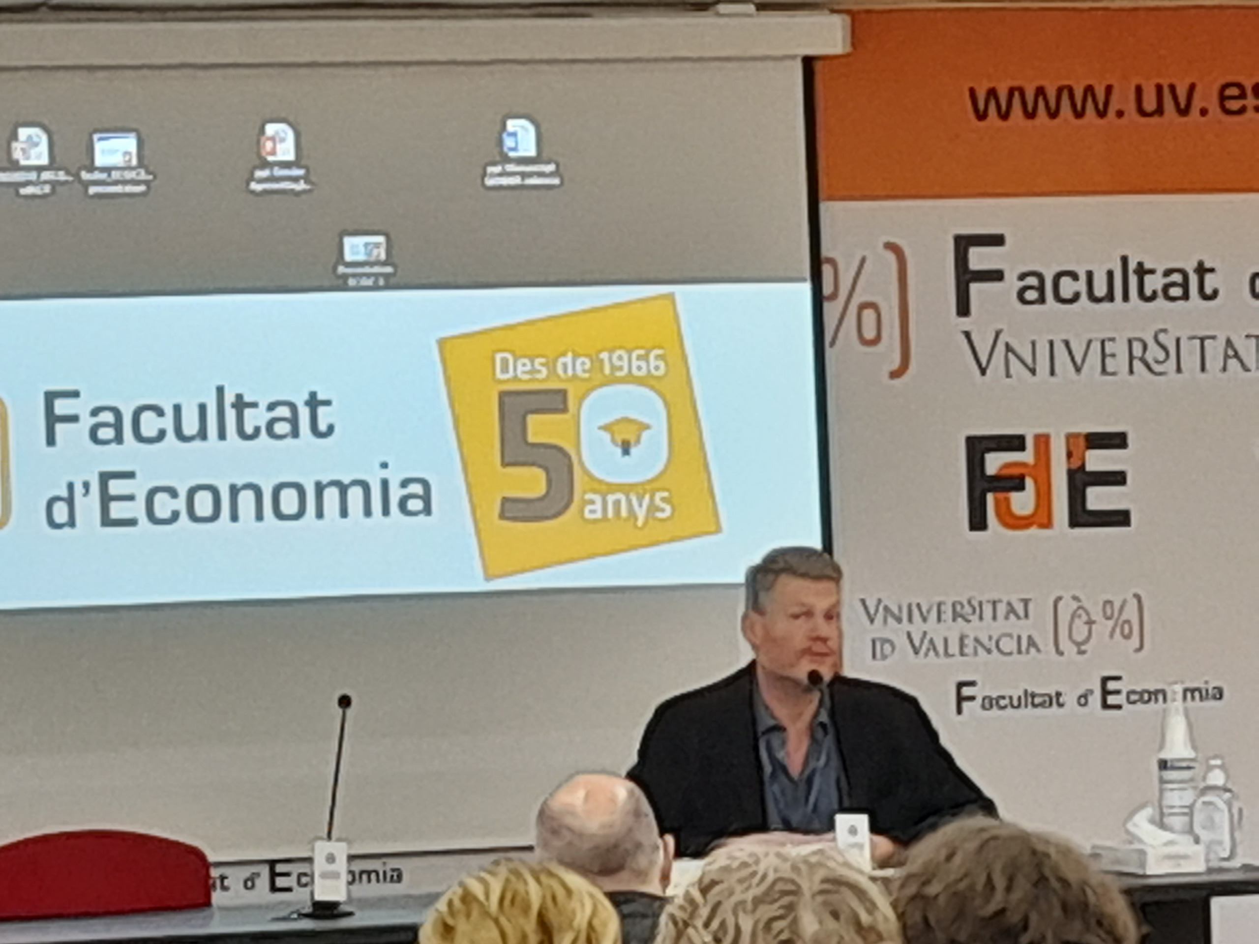 The splendid Paraninf Centre Cultural La Nau hosted the opening panel. Participants included María Vicenta Mestre Eserivà, president of the university; Francese Alós Muñoz Murgui, Dean of the Faculty of Economics; Rafael Climent González, Minister for Sustainable Economy of the Region of Valencia—who formalised the first decree to promote the ECG model in the real world; and Vanessa Campos from the ECG Chair at the University, who was the principal organiser. Christian Felber delivered the opening keynote, “From GDP to the Common Good Product: Measuring Economic Success According to the Goal”, aiming to elevate the main focus of the ECG model from the micro to the macro level.